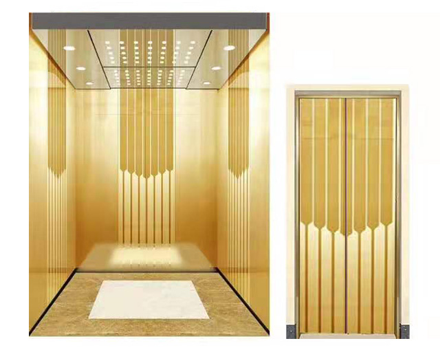 电梯装潢轿厢是电梯用来运载乘客或货物及其他载荷的轿体部件。吊顶通常为镜面不锈钢材料;轿底为2mm厚PVC大理石纹地或20mm厚大理石拼花.